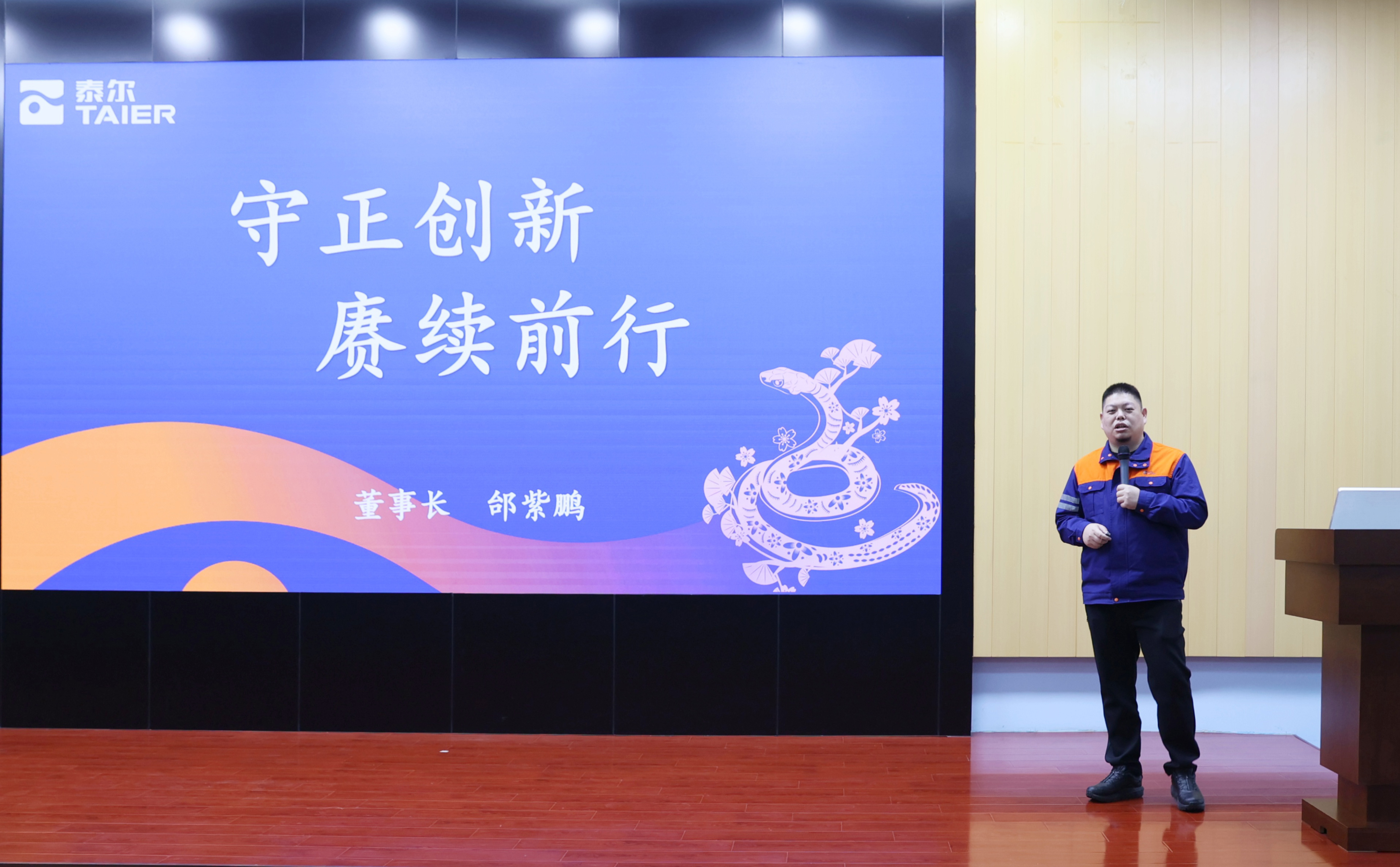 董事長(zhǎng)邰紫鵬在會(huì)上作了《守正創(chuàng)新 ?賡續(xù)前行》的主題講話。他以24節(jié)氣、一天24小時(shí)作喻,深情回顧了泰爾二十四年來(lái),在創(chuàng)始人邰正彪的帶領(lǐng)下,以鋼鐵裝備國(guó)產(chǎn)化為使命的家國(guó)情懷和創(chuàng)業(yè)艱辛;奮斗不息,志在百年事業(yè)的行業(yè)擔(dān)當(dāng);創(chuàng)新驅(qū)動(dòng),推進(jìn)行業(yè)發(fā)展的自主創(chuàng)新、技術(shù)引領(lǐng);聚小家惠大家的以人為本,回饋社會(huì)。邰紫鵬指出,泰爾現(xiàn)在到了一個(gè)關(guān)鍵時(shí)期,大家在工作報(bào)告中出現(xiàn)頻率最高的詞是體系化、數(shù)字化、智能化。如果說(shuō)創(chuàng)始人他們走過(guò)了“0-1”的階段,現(xiàn)在就是“有到優(yōu)”。新時(shí)代發(fā)展下的新要求就是:求新?求變?求發(fā)展,在堅(jiān)守中求新、在創(chuàng)新中求變,以求新求變贏得新優(yōu)勢(shì),鑄就新的輝煌。